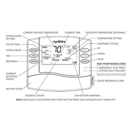 Aprilaire 8463 Thermostat, Programmable Dual Powered Thermostat - 1-Heat/1-Cool