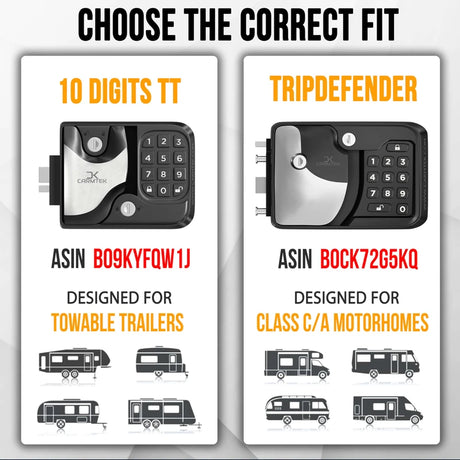 CARMTEK - 10 Digits RV Keyless Entry Door Lock | 100% Metal RV Door Lock Keyless Entry | Keyless RV Door Locks w/ 2 Inside Latches | RV Keyless Locks w/ 2 Fobs | Only Fit 3.75" x 2.75" Lock Hole