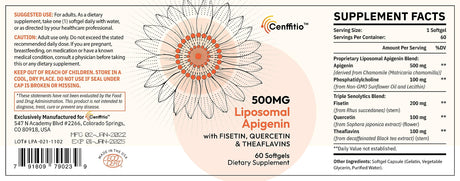 Cenffitio Liposomal apigenin 500mg Softgels - Optimal Apigenin Supplement with Fisetin, Quercetin and Theaflavins (60 Count (Pack of 1))