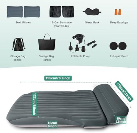 SUV Air Mattress with Double-Sided-Thick Flocked/with The Most Complete Sleeping Accessories/Car Mattress with Pump & Built-in Pillow/Car Air Mattress for Auto Camping,Road Trip