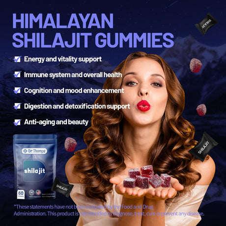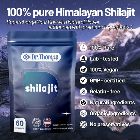 DR.THOMPS Shilajit Gummies, 60 Count, Natural Himalayan Supplement for Energy and Vitality