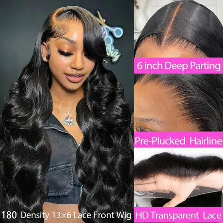 30 Inch 13X6 Lace Front Wigs Human Hair 180 Density Body Wave Lace Front Wigs Pre Plucked Brazilian 13x6 HD Lace Frontal Wigs Glueless Wigs Human Hair Wig For Women