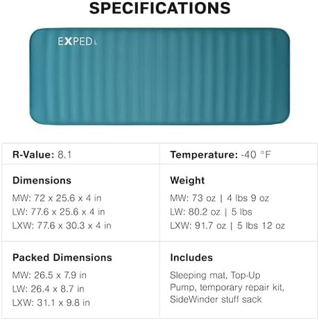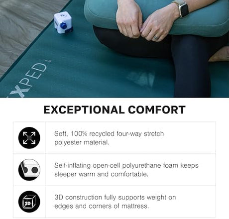 Exped MegaMat Medium Wide - Self Inflating Soft Car Sleeping Mat, 4” Foam Pad, Pump Included