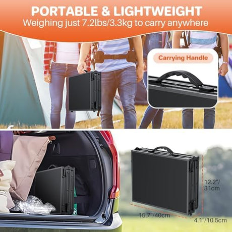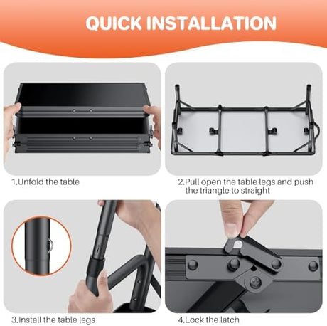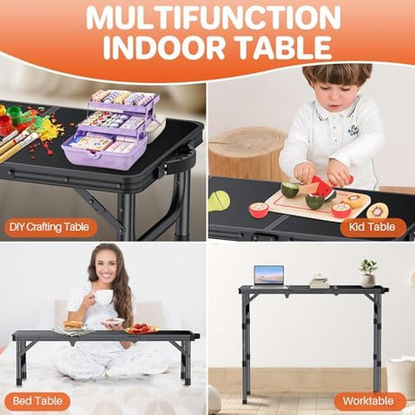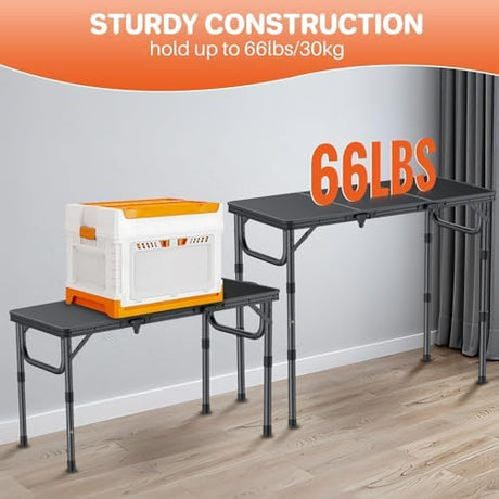 FUNYKICH 3ft Camping Folding Table with 3 Adjustable Height, Portable Picnic Tables, 34.2'' Lx15.7'' W Lightweight Aluminum Outdoor Table with Carry Handle for Camping, Picnic, Backyard, BBQ, Black