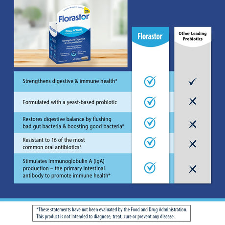 Florastor Select Gut Boost 2-in-1 Probiotic & Fiber Supplement, 30 Veggie Caps