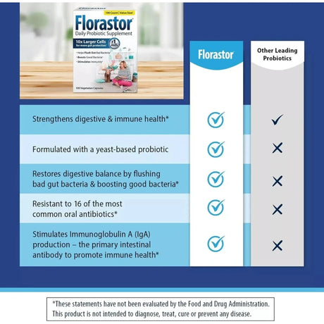 Florastor 250 mg Daily Probiotic Supplement - 100 Vegetarian Capsules