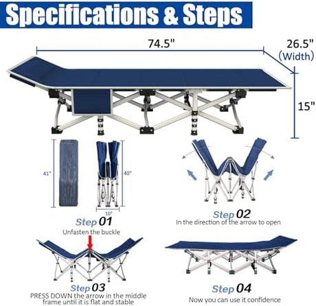Cot Camping Cot with Thick Pad Cots for Sleeping Camping Bed Folding Cot 450LBS(Max Load) Comfortable Double Layer Oxford Heavy Duty with Carry Bag for Home Outdoor Travel