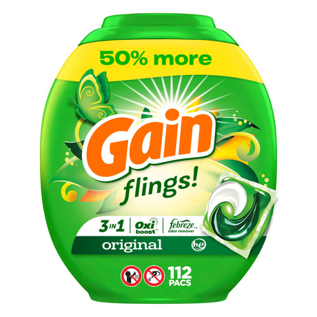 Gain flings Laundry Detergent Soap Pacs HE Compatible 112 ct Long Lasting Scent Original Scent