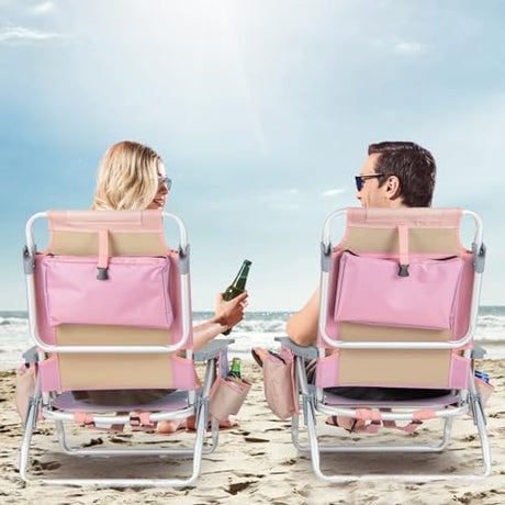 Giantex Folding Beach Chair, Patio Sling Chairs with 5 Adjustable Position, Head Pillow, Storage Bag, Towel Bar, Cup Holders, Backpack Chairs for Sunbathing, Camping Chair