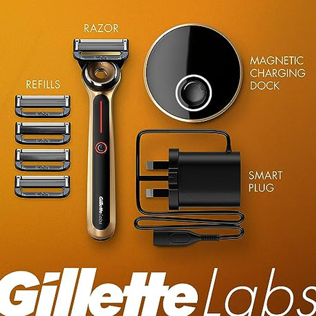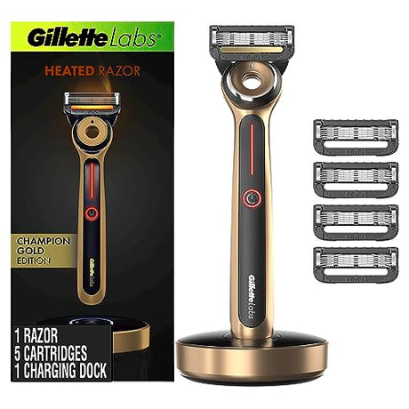 Gillette Labs Heated Razor Gold Edition - 1 Handle, 5 Blade Refills, 1 Charging Dock