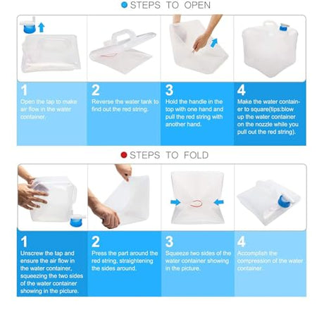 Collapsible Water Container Jug with Spigot, 2 Packs 5.3 Gallon BPA Free Camping Water Storage Carrier for Outdoor Hiking Backpacking & Emergency Survival Kit, Foldable Portable Canteen
