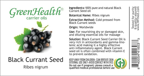 GreenHealth Black Currant Seed Oil – 4 fl oz (118 ml) – 100% Pure Virgin Cold Pressed