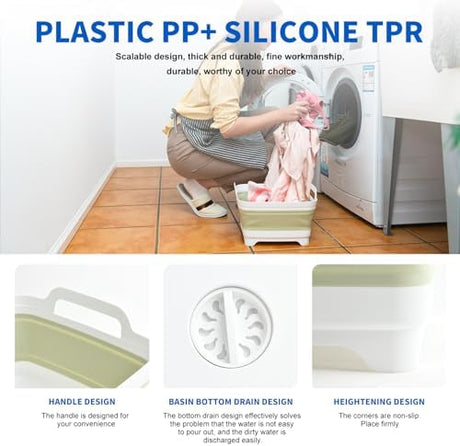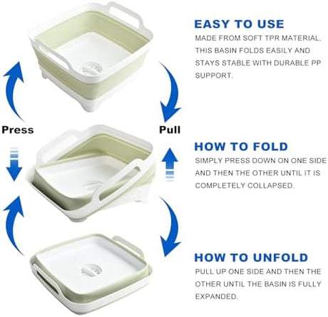 Collapsible Dish Basin Foldable Kitchen Sink With Drain Plug Plastic Laundry Tub 9L/2.4Gal RV & Camping Wash Basin Space-Saving Bottle Washing Sink (Green)