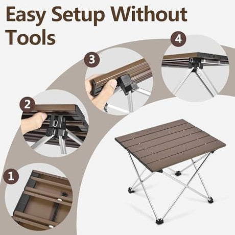 Grope Small Folding Camping Table with Aluminum Table Top, Beach Table for Sand with Carrying Bag,Prefect for Outdoor,Picnic,BBQ,Cooking,Festival