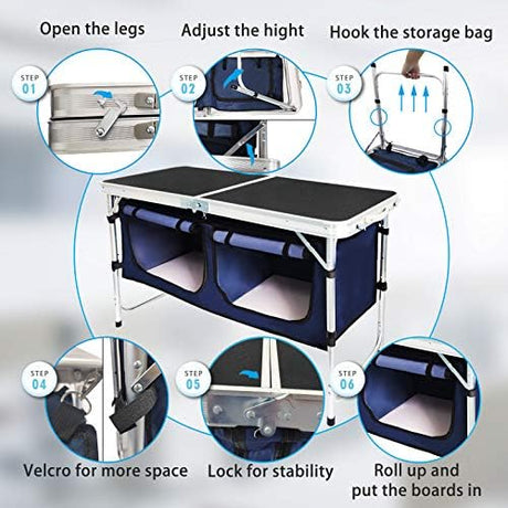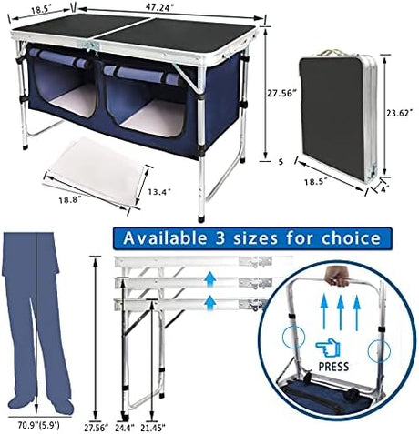 Folding Camping Table with Storage Compartment Aluminum Lightweight Camp Kitchen Table Height Adjustable Indoor/Outdoor Table Perfect for Tailgating, Backyards, BBQ,Picnic, Black
