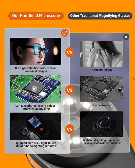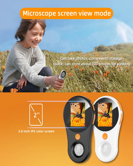 Digital Microscope Handheld 2.0 inch IPS Color Screen,Portable Digital Magnifying Glass 500x,Marco Microscope for Kids,Built-in 8LED Lights,USB Compatible with PC Windows, Mac OS
