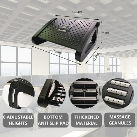 Jakarl Office Foot Rest Under Desk, Ergonomic Adjustable Foot Rest at Work with Massage Roller,Foot Stools for Under Office Desk (6 Heights Adjustable)