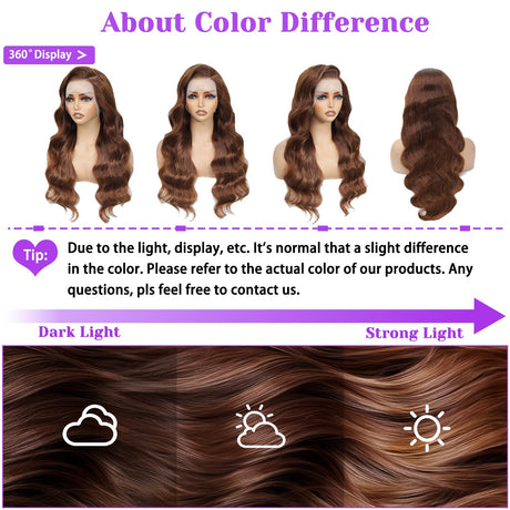 Chocolate Brown Lace Front Wig 13x6 HD Body Wave Lace Front Wigs Human Hair Pre Plucked Colored Frontal Glueless Brown Human Hair Wig for Women with Baby Hair 180 Density 26 Inch