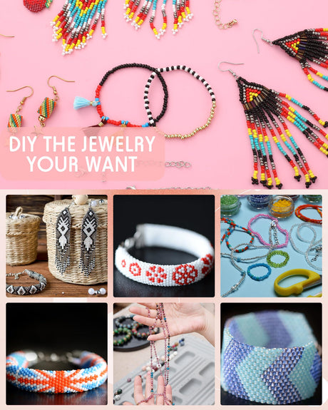 Jexine Bead Loom Kit for Adults 24000 Pcs Beading Loom Supplies with 48 Color 2 mm Glass Seed Bead Bracelets Christmas Jewelry Earring Making Tools Gifts for Women DIY Craft