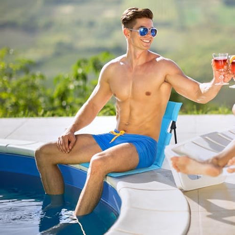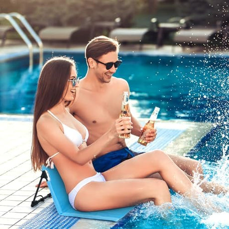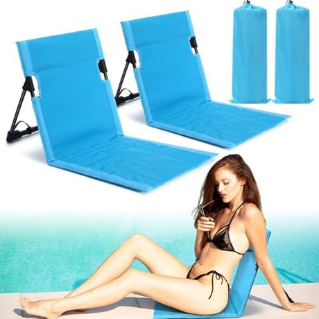 Karenhi 2 Pcs Foldable Pool Chairs Portable Poolside Seat for Edge of Pool Portable Flip Chairs for Beach Poolside Camping Picnic Lawn Accessories (Light Blue)