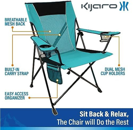 Kijaro Foldable Camping Chair, Vik Black, Polyester, Mesh, Steel, Portable, Durable, Unisex
