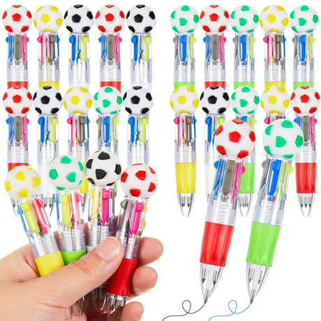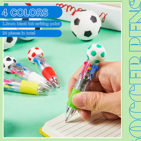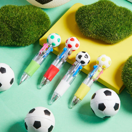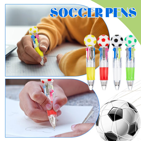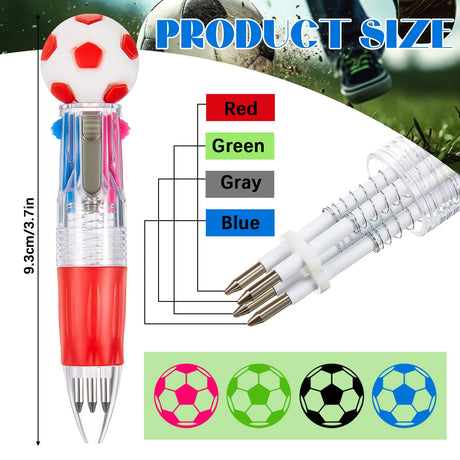 Kosiz 24 Pack Soccer Party Favors Sport Pen Multicolor 4 in 1 0.5mm Ballpoint Pen for Office Sport Lover Novelty Christmas Gifts Goodie Bags Stuffers