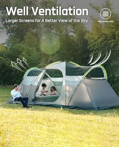 8 Person Larger Extended Dome Camping Tent with 3 Rooms, Waterproof Semi-Freestanding Family Outdoor Tent with Spacious Interior and Mesh Windows