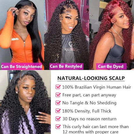 Manorshen Deep Wave Lace Front Wigs Human Hair 180% Density 13x6 HD Transparent Glueless Pre Plucked Deep Curly Wig Wet and Wavy Human Hair Wigs for black Women Natural Color with Baby Hair (22 Inch