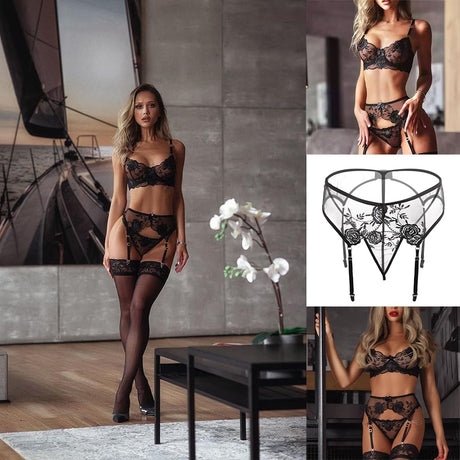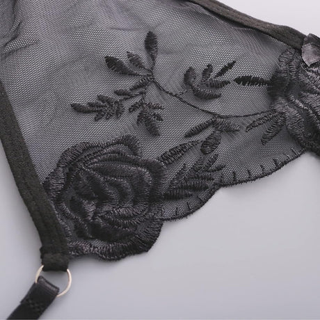 UnderYours Lace Garter Belt Thong Set for Women Suspender Lingerie with 4 Metal Clips Holder Belts for Stockings+G-string