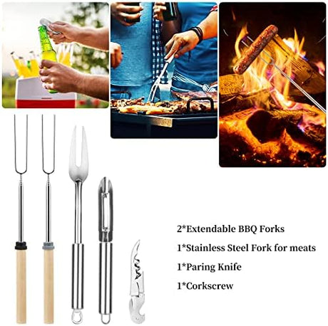 Camping Cooking Utensils Set, Stainless Steel Grill Tools, Camping BBQ Cookware Gear and Equipment for Travel Tenting RV Van Picnic Portable Kitchen Essentials Accessories