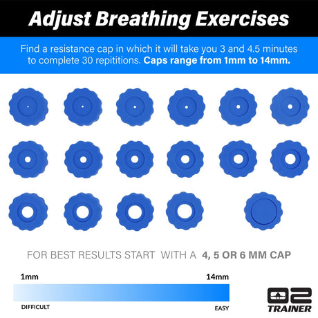 Bas Rutten O2Trainer: Breathing Muscle Training Device – Lung Power & Endurance Tool for Athletes, Singers & High-Altitude Performance – Diaphragmatic Respiratory Trainer – 16 Resistance Caps – Blue