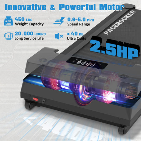 PACEROCKER Walking Pad Treadmill with 12% 9-Level Auto Incline, 450 lbs Capacity Bluetooth Speakers Under Desk Treadmills for Home Small, Hiking Mode, 5 MPH