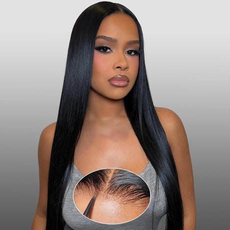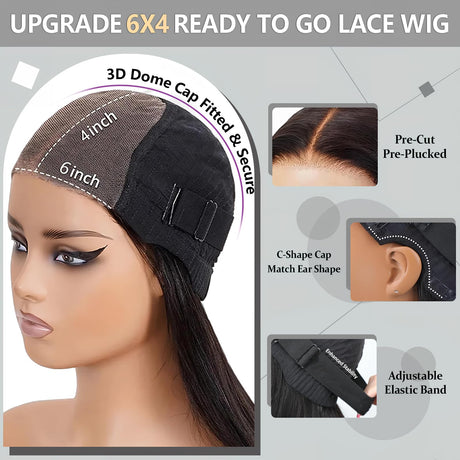 24Inch Wear and Go Glueless Wigs Human Hair Pre Plucked Pre Cut 180% Density 6x4 Ready to Wear Glueless Human Hair Wigs Straight for Black Women