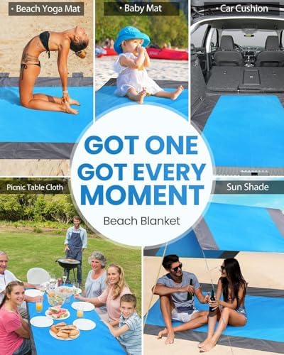 POPCHOSE Beach Blanket, Sandfree Beach Mat 108"x85.2"/83"x78" for 7 Persons, Extra Large Beach Blanket Waterproof Sandproof with 6 Stakes, Easy to Clean, Lightweight Compact Beach Accessories