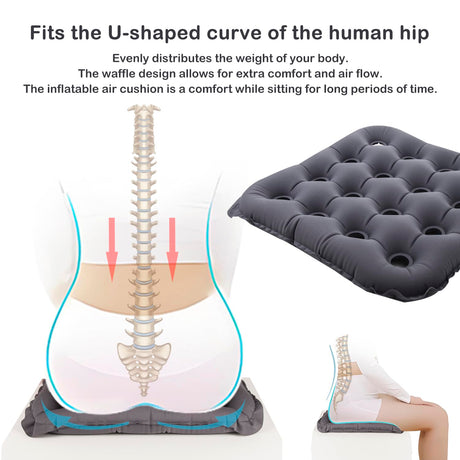 POPIPEN Inflatable Seat Cushion, Portable Air Seat Chair Cushions for Pressure Relief Breathable Waffle Square Seat Pad for Home Car Wheelchairs Office Chairs and Airplanes (1 Pack)