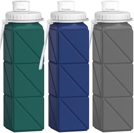 3 pack Collapsible Water Bottles,Silicone Foldable Portable Water Bottle 20.6oz, Lightweight Reusable Leakproof for Travel Hiking Camping Cycling Workouts Yoga Fitness Indoor Outdoor Sports
