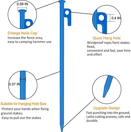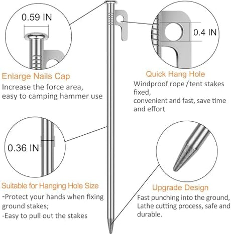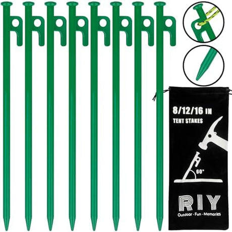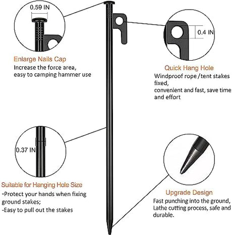 8 Pack Tent Stakes Heavy Duty 12 inch Steel Tent Pegs for Camping Unbreakable and Inflexible