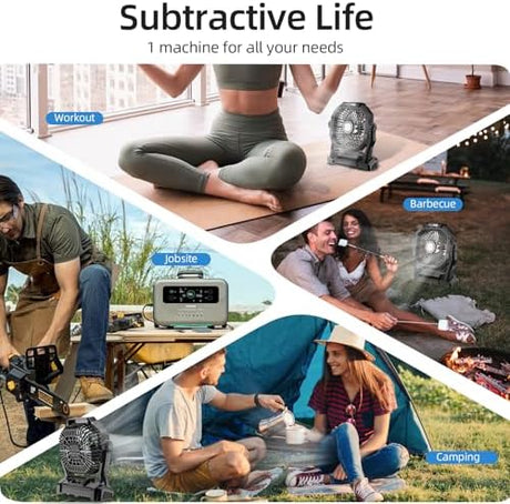 Camping Fan Rechargeable, 20000mAh Battery Powered Portable Fan with LED Light & Hook, 4-Speed 270° Adjustable, Camping Essentials for Tent, Travel, Car, Outdoor, Indoor, BBQ, Fishing, Jobsite