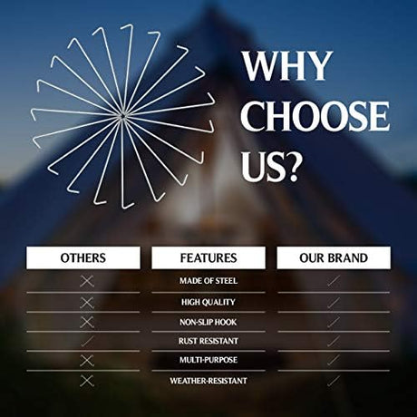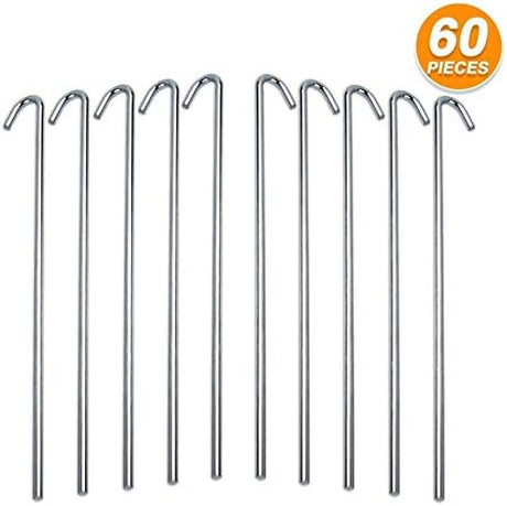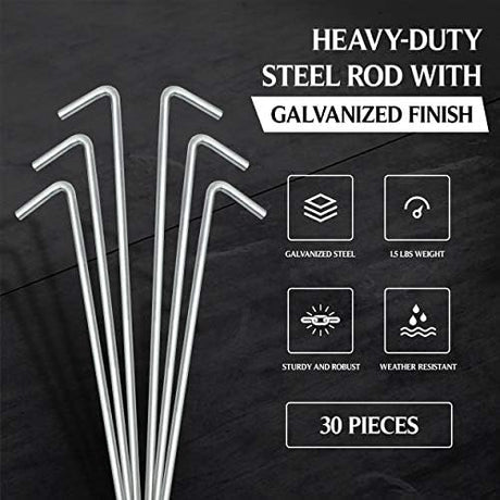 Tent Stakes Heavy Duty Metal, Galvanized Rust-Free Yard Stakes, Garden Edging Fence Hook | Tent Stakes Metal for Outdoor Camping, Tent Garden Stakes for Gardening & Canopies, Tent Pegs - by Ram-Pro