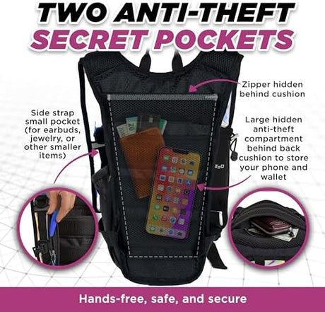 Anti Theft Rave Hydration Backpack - 1.5L Insulated Water Backpack for Raves, Festivals, Hiking, Running - Festival Hydration Pack for Men Women Kids Festival Essential