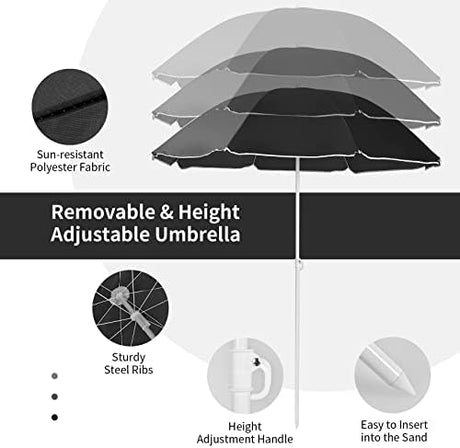 ReunionG Double Folding Camping Chairs, Portable Beach Chairs with Removable Umbrella & Mini Table Carrying Bag, Outdoor Lawn Chairs for Picnic, Patio, Pool, Park (Black)