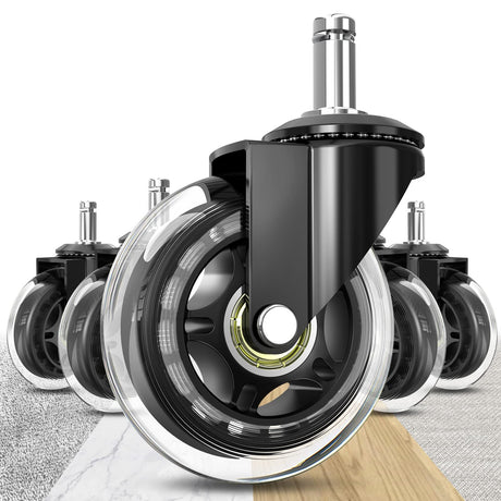 Soontrans Office Chair Wheels 10mm Stem, Compatible with IKEA Chairs ONLY, 3/8" Replacement Rubber Chair Casters, Set of 5, Desk Chair Caster Wheels Protection for Hardwood Floors Carpet