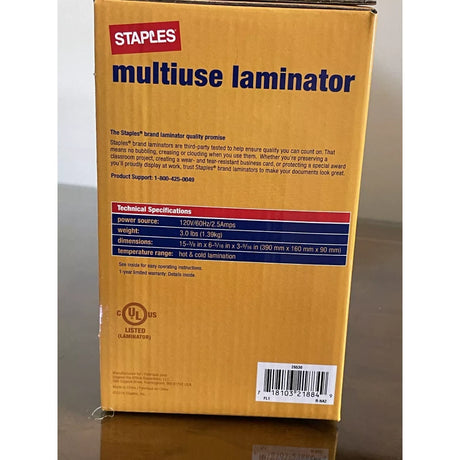 Staples NEW Staples 26530 Multiuse Laminator Thermal & Cold, 9.5" Width, White