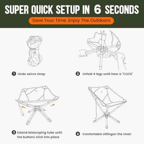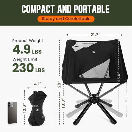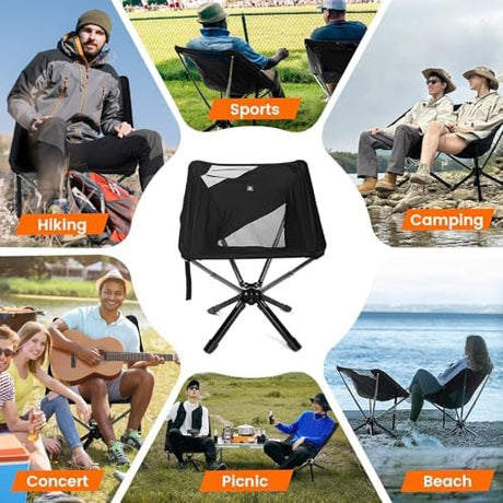 Swivel Portable Chair - Small Compact Collapsible Folding Chairs for Adults, Setup in 8 Seconds, Lightweight Outdoor Backpack Chair for Camping, Travel, Hiking, Beach, Support 300 LBS