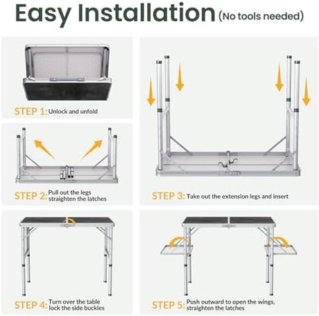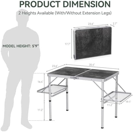 Titanker Folding Camping Table 3ft, Folding Picnic Table, Camp Tables Portable Foldable, 50% Extra Side Space, Outdoor Patio Table, Camping Essentials, Aluminum Light & Solid, Silver