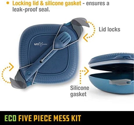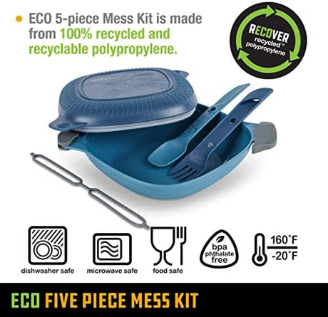 UCO Recycled ECO 5-Piece Camping Mess Kit with Bowl, Plate, Switch Spork Utensil Set
