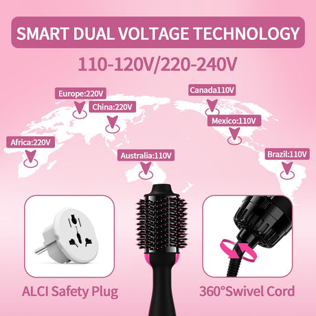 Hair Dryer Brush Negative Ion Anti-frizz Hot Air Volumizer, Hair Dryer Brush, Styler, 110V-120V/220V-240V Dual Voltage, European and Travel Use
