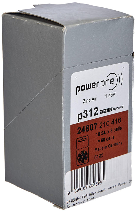 Power One Zinc p312 hearing aid battery,60 pcs pack