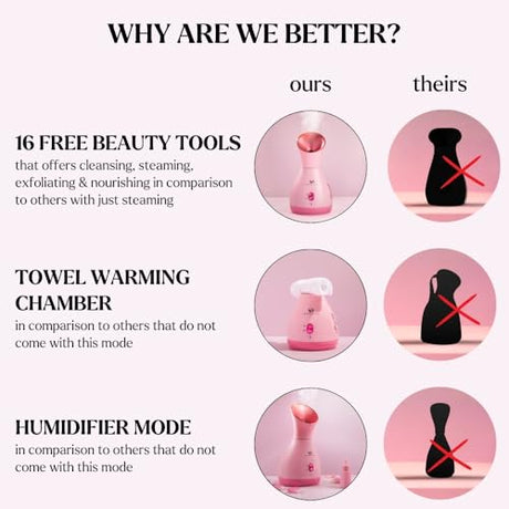 Facial Steamer Spa Kit with Complimentary 17 Skin Care Tools | Face Steamer for Facial Deep Cleaning with Towel Warmer & Humidifier Mode| Self Care Spa Gifts for Women, Mothers Day Gifts for Mom