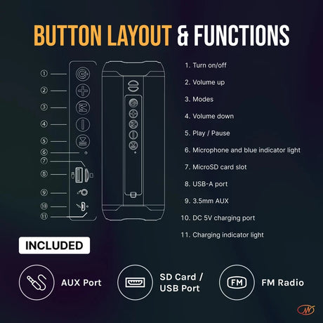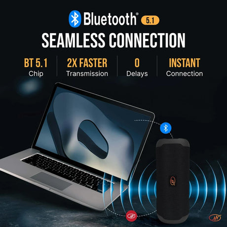 WallaSound Bluetooth Speaker & FM Radio - IPX5 Waterproof Portable Wireless Speaker with BT 5.1, Stereo Sound, Micro SD Card MP3 Player, TWS Pairing & Built-in Mic for Home, Outdoors, Travel